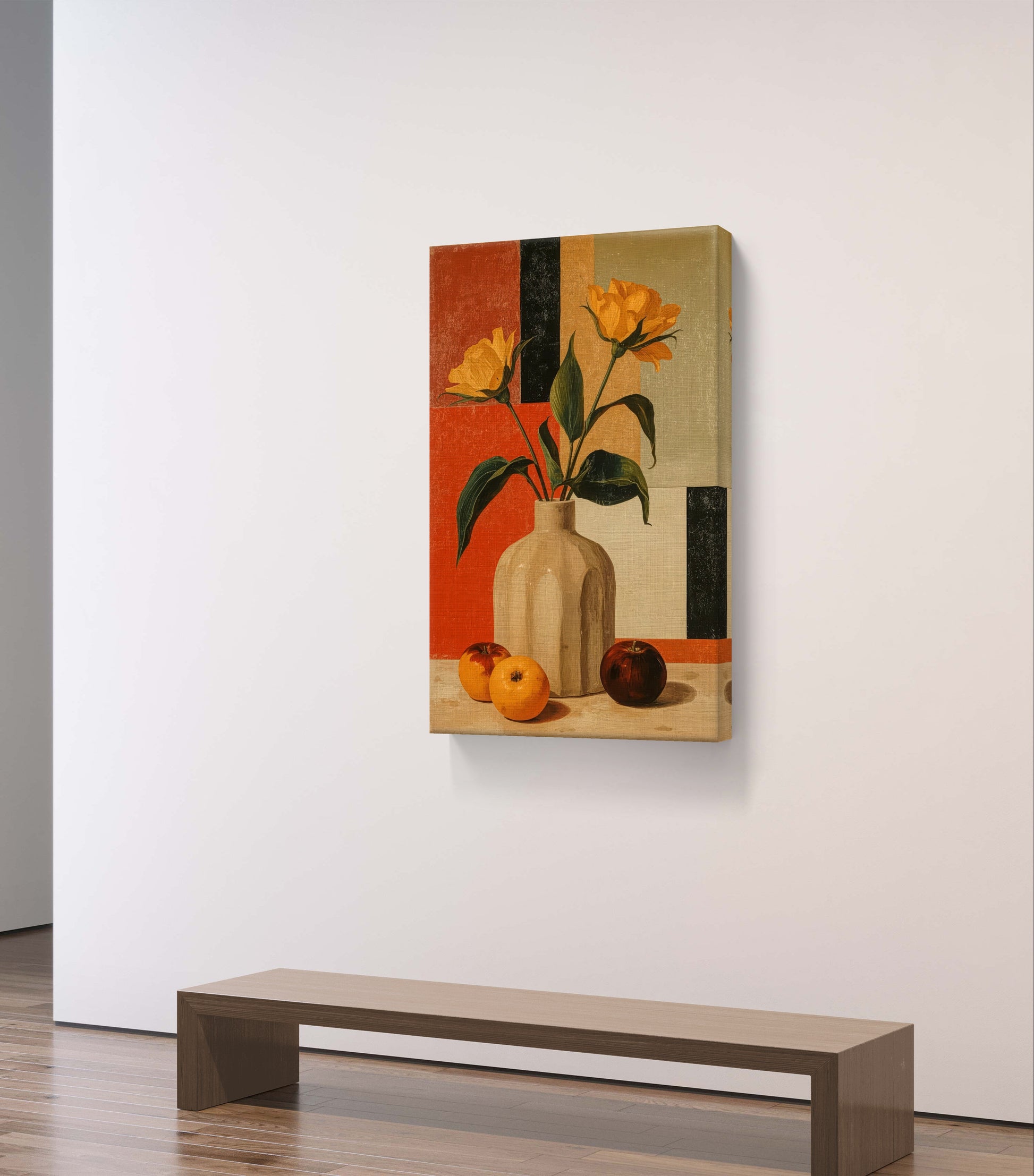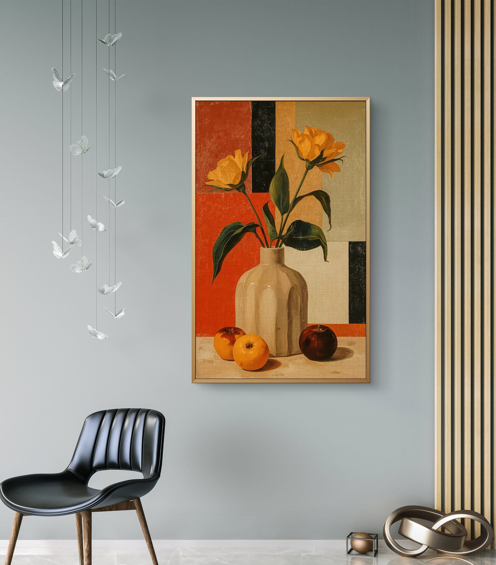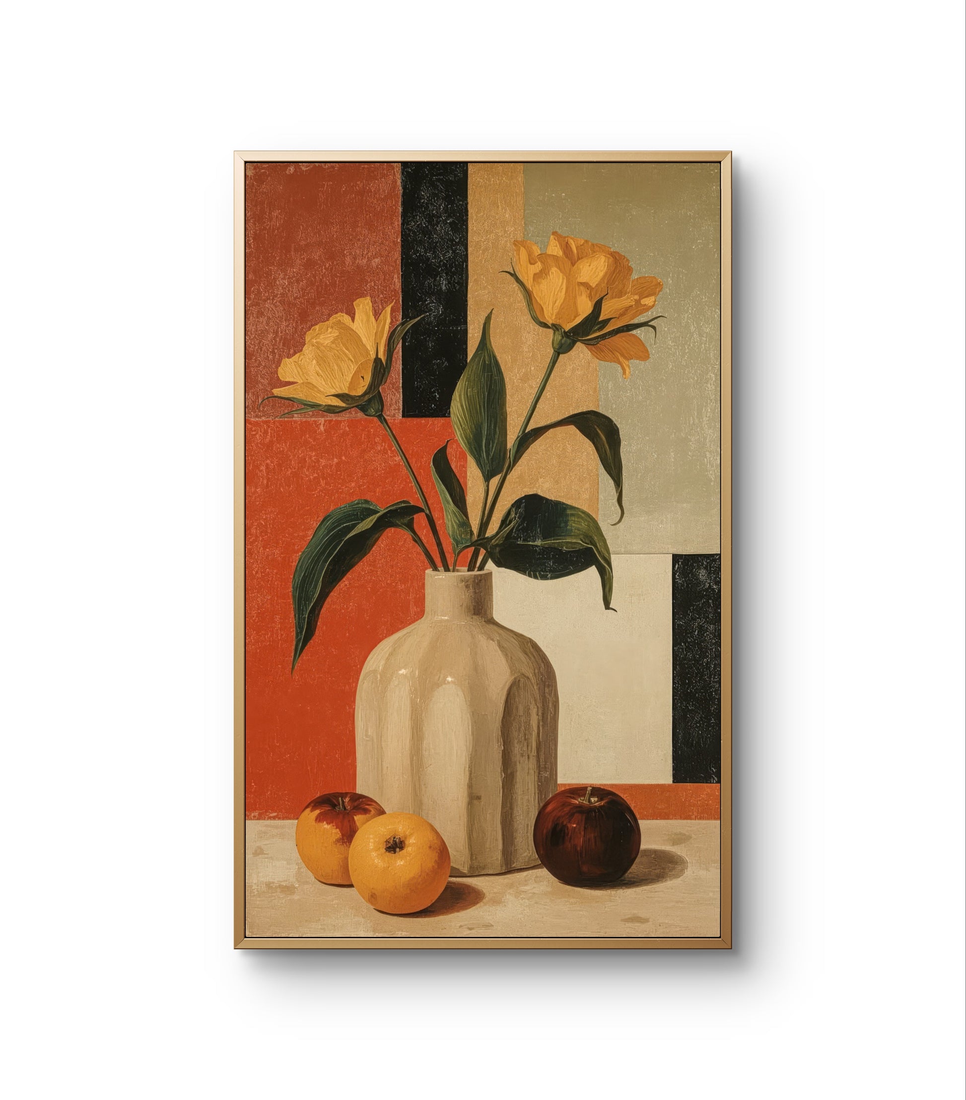 Golden Geometry – Still Life with Tulips and Oranges Premium Wall Art Print