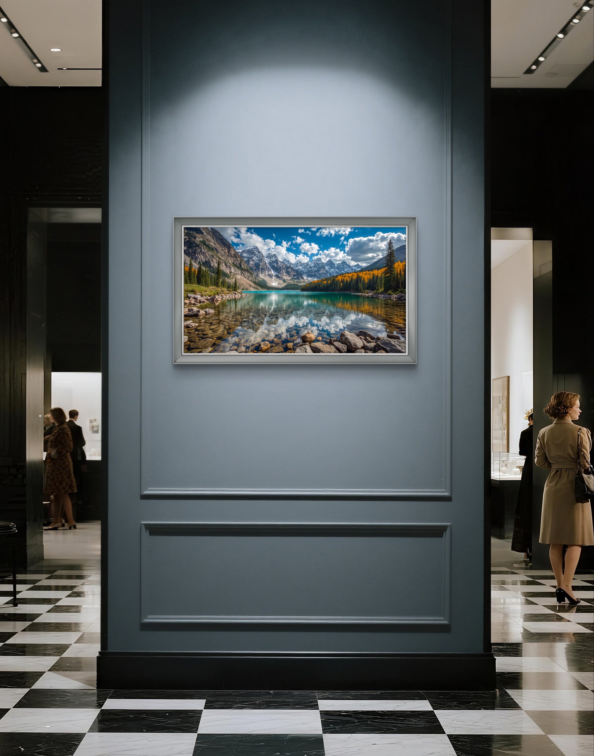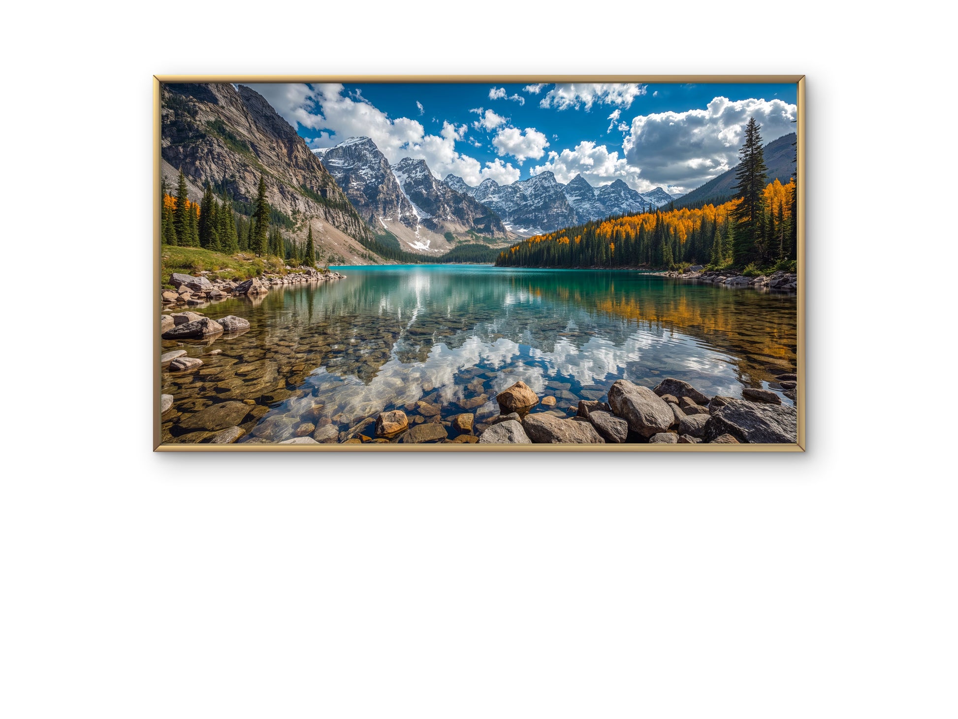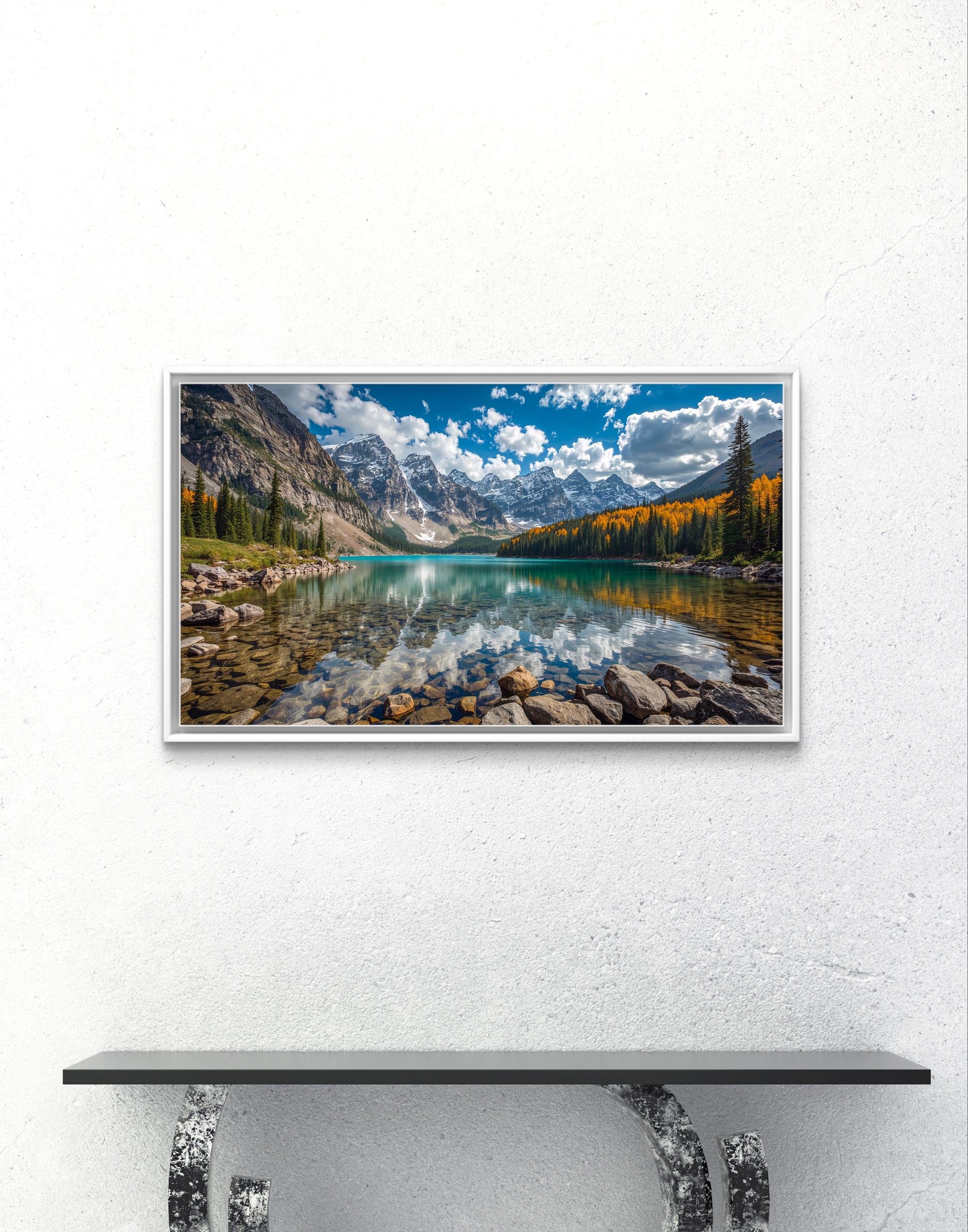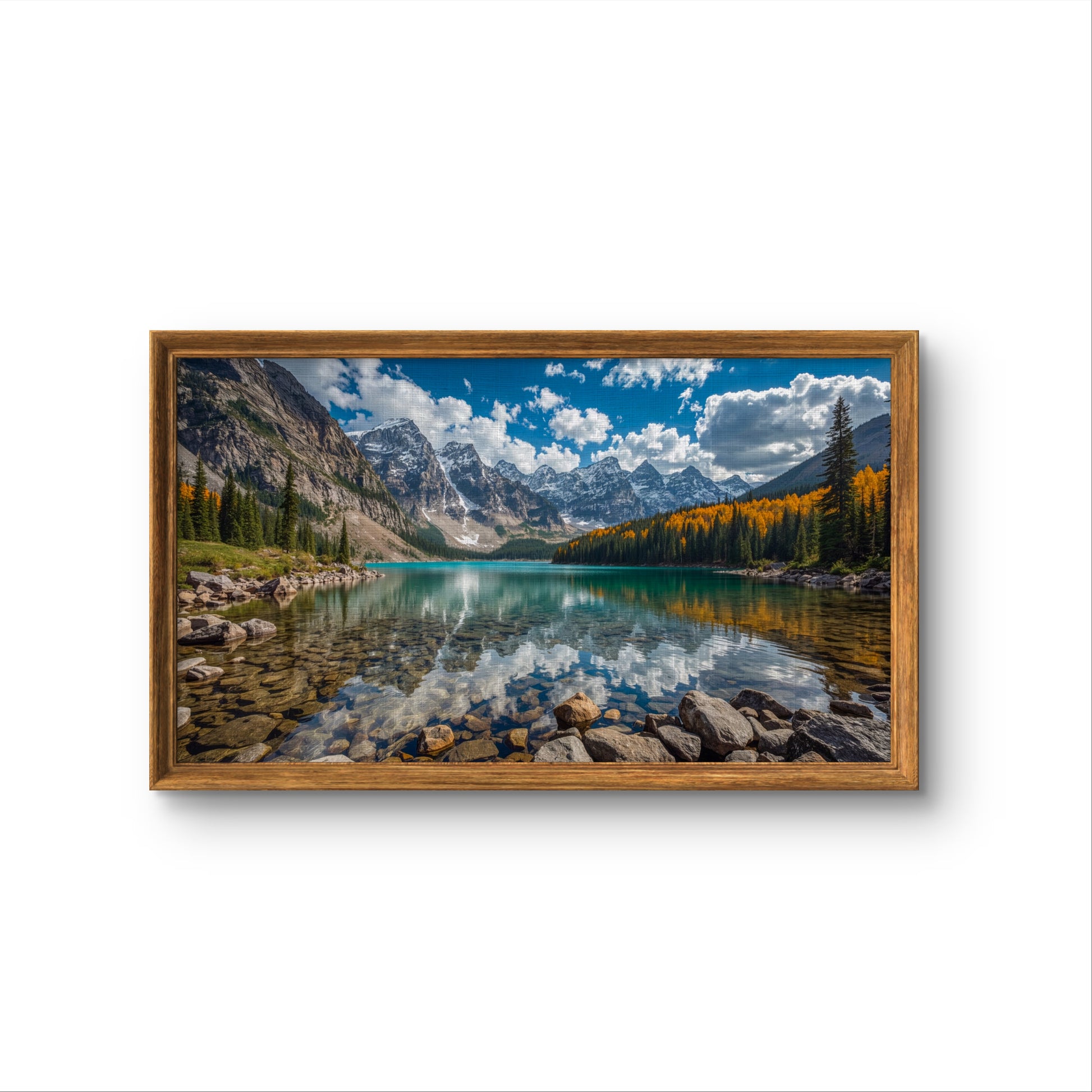Bring the serenity of nature into your home with this stunning wall art print. Featuring a crystal-clear mountain lake surrounded by majestic peaks and golden autumn trees, this artwork captures the essence of peace and reflection. Perfect for living rooms, bedrooms, offices, or as a meaningful gift for nature lovers.